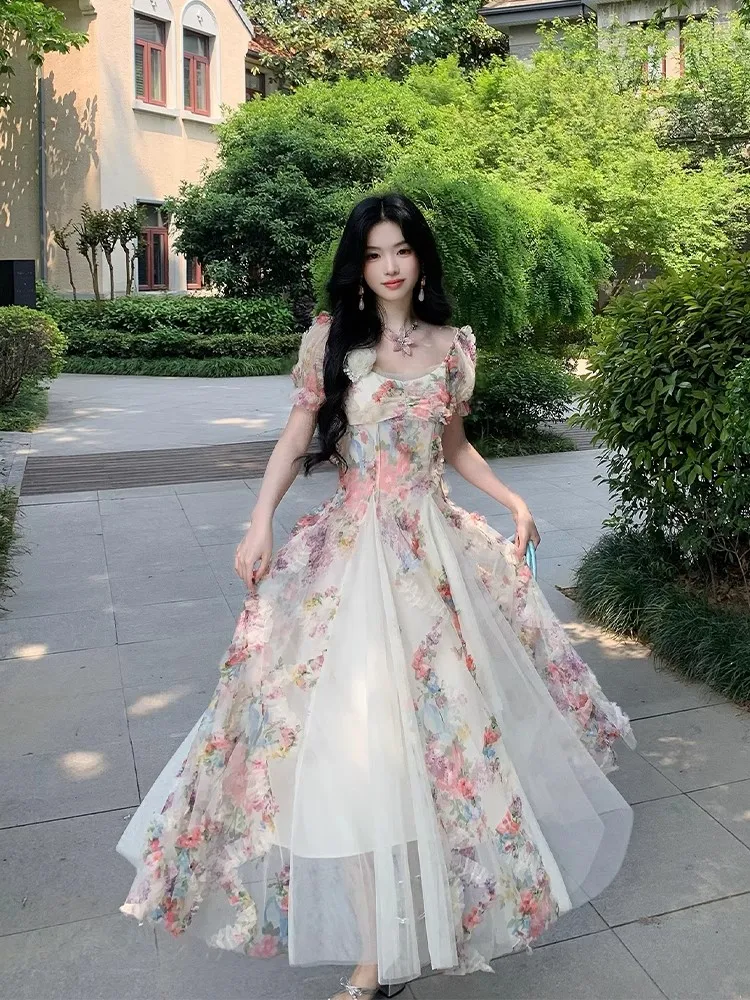 Keni plus Size Pure Desire Heavy Work Floral Strap Dress Women Summer Slightly Plump Atmosphere Roma...