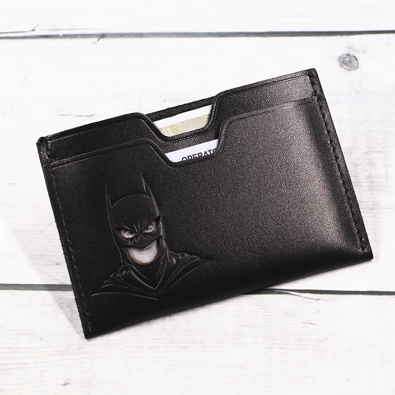 Genuine Leather Bat ID Wallet For Men Slim Front Pocket Minimalist Card Holder Case Wallet With Cuto...