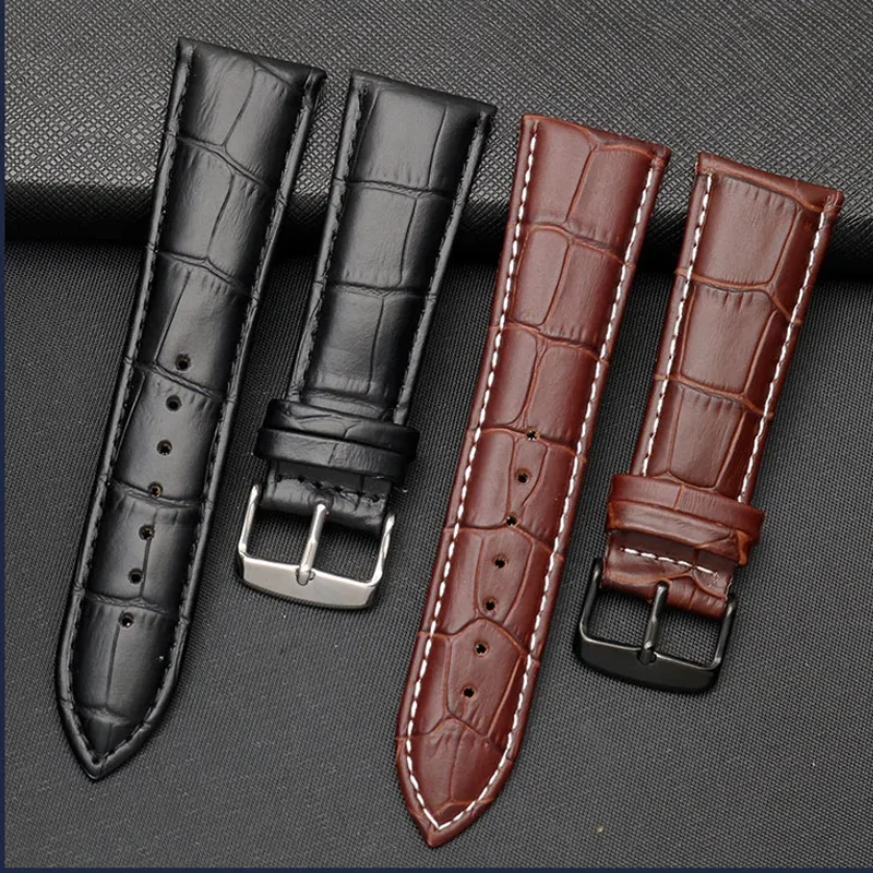For Tissot Seiko Calf Genuine Leather WatchBand Alligator Grain Butterfly Clasp Watch Strap 12/13/14...