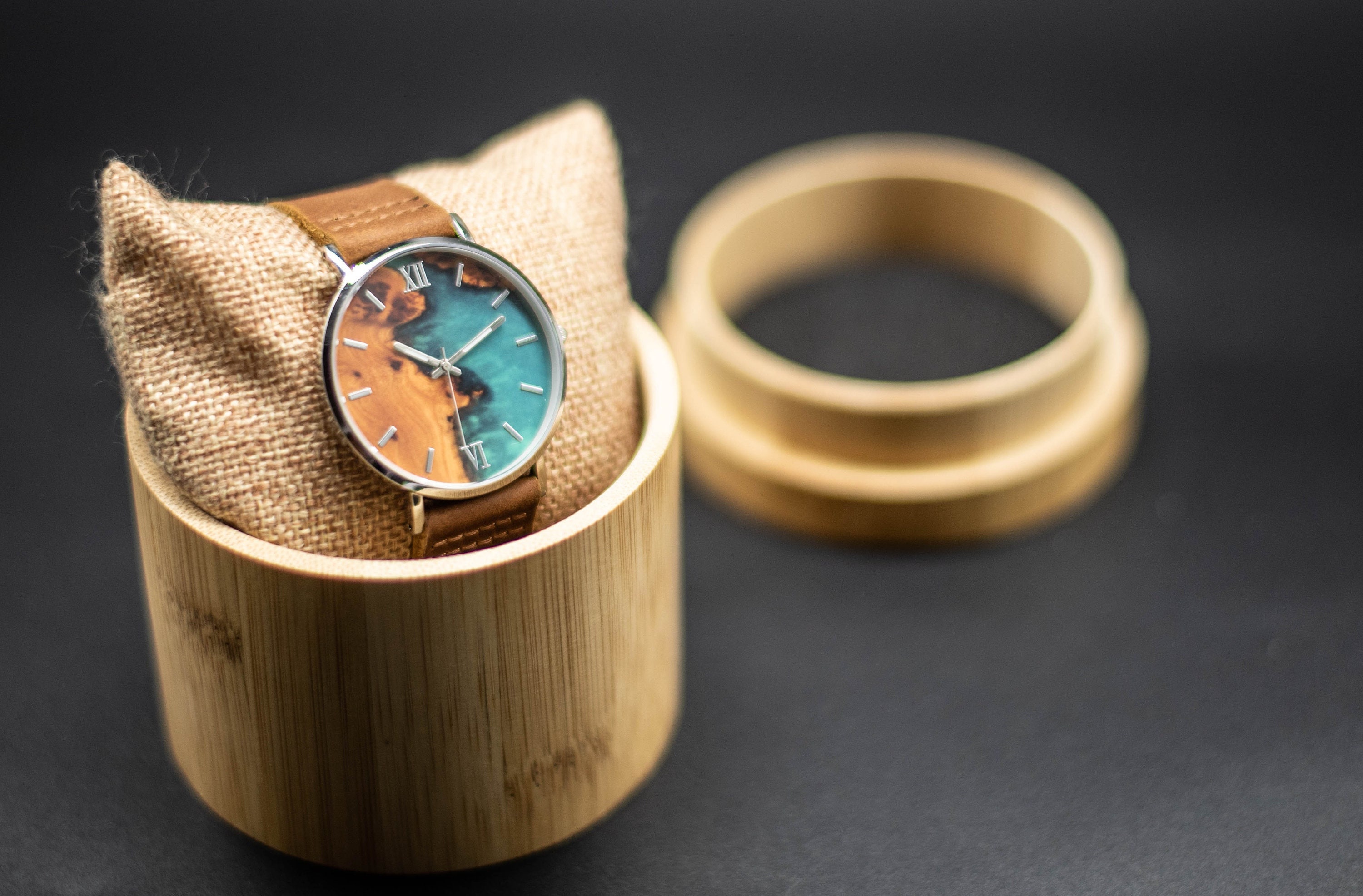 Epoxy resin watch, Leather strap watch, Custom watch for men, Blue ...