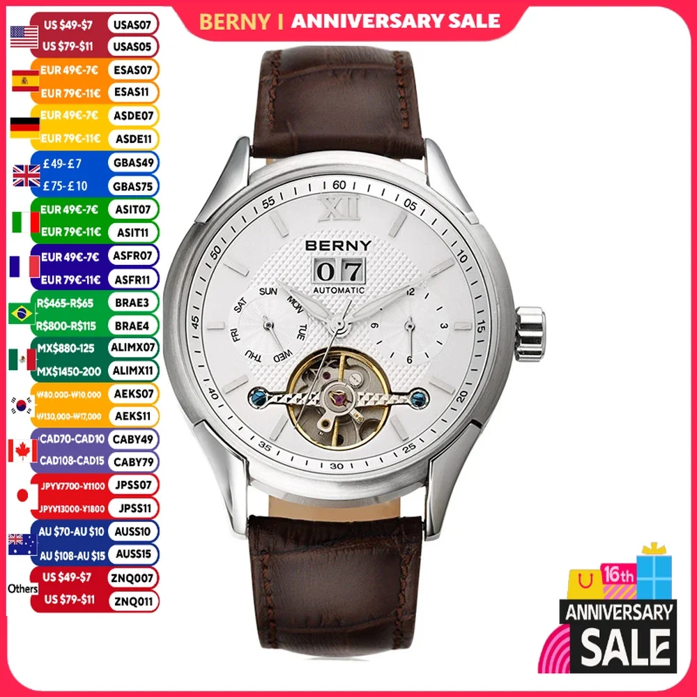 BERNY Automatic Watch for Men Auto Self-wind Mechanical Watches Dat...