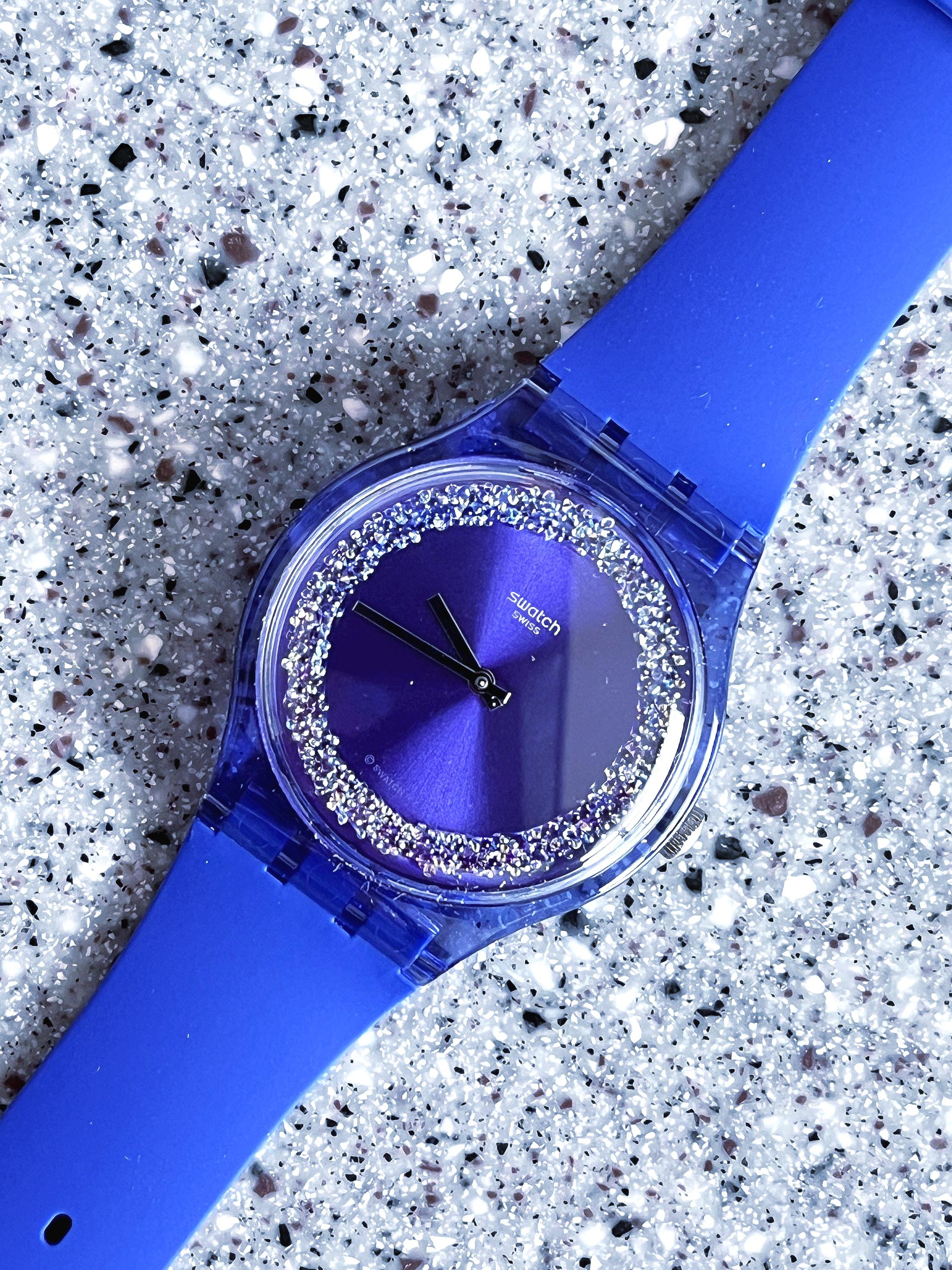 41mm Swatch watch larger crystal royal blue swatch rubber band ever...