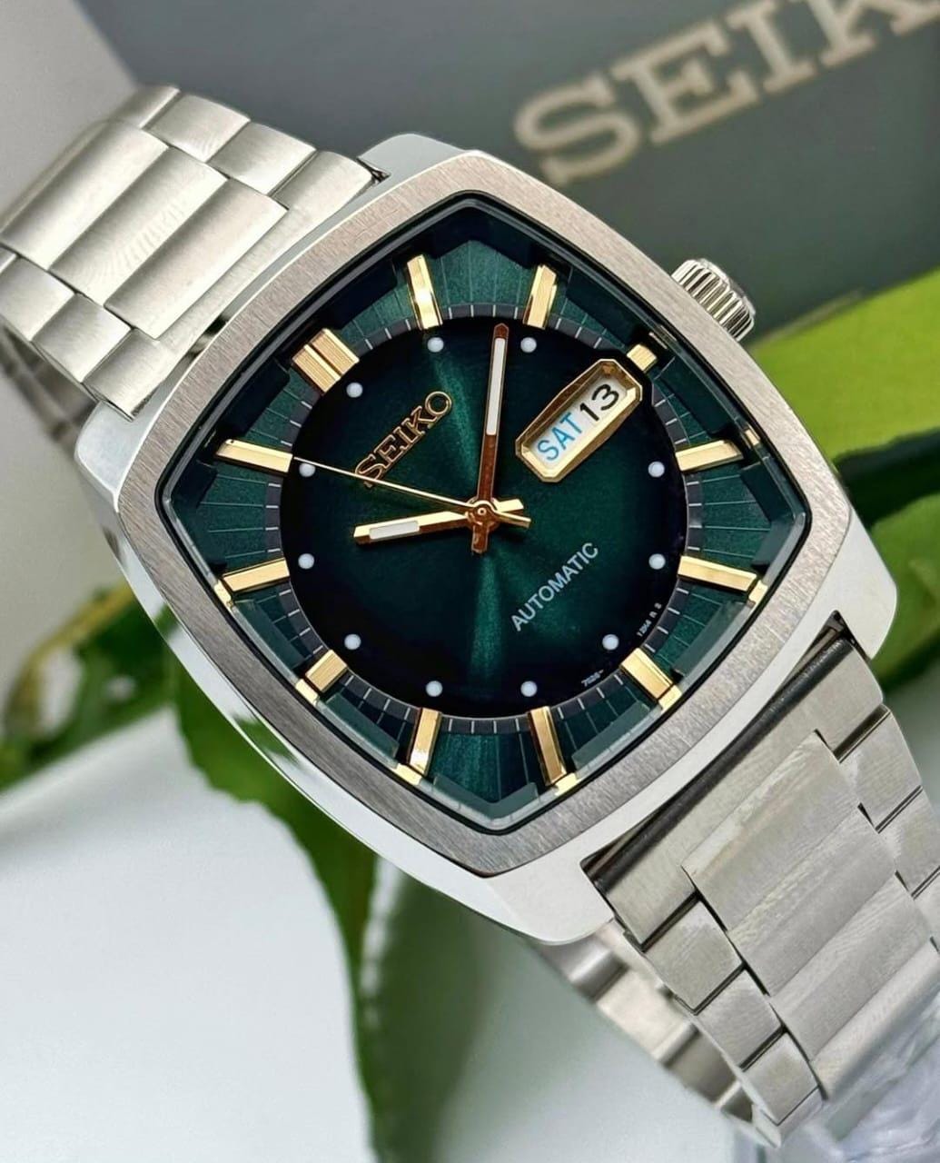 Upgrade your wrist with this Seiko Green Dial Tank Watch, powered by the legendary 7S26 automatic mo...