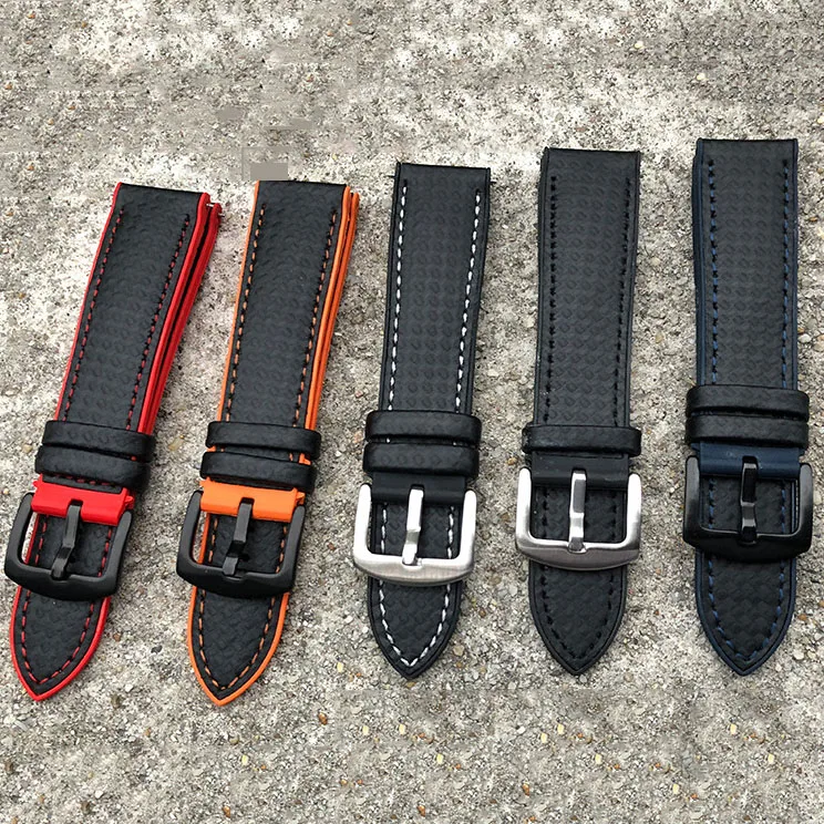 Waterproof Rubber Leather Hybrid Watch Strap Sport Breathable Carbo...