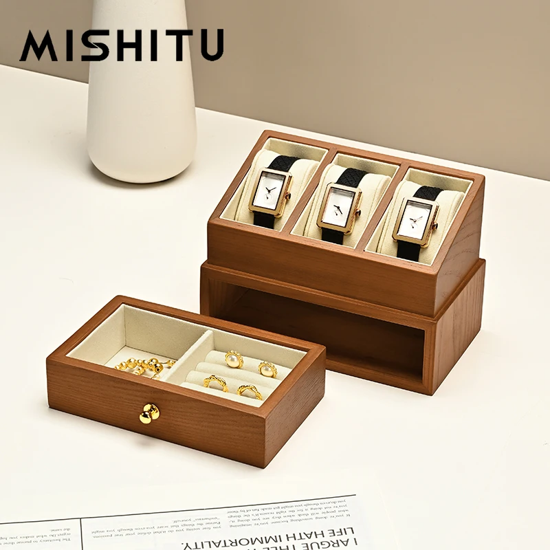 MISHITU Watch Jewelry Organizer Box Double-layer Wooden Jewelry Organizer Ring Earring Necklace Jewe...