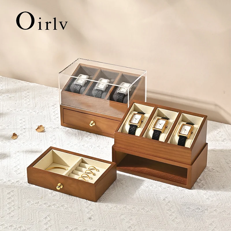 Oirlv Wooden Watch Box Double-layer Jewelry Organizer Wrist Watch Storage Box Dust-proof Transparent...