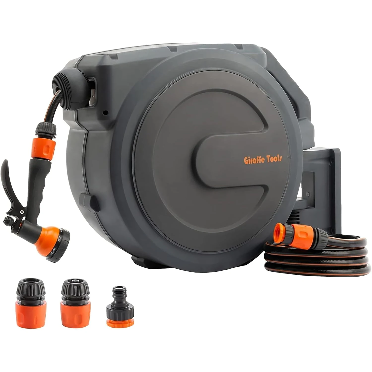 Giraffe Tools Retractable Hose Reel Wall Mounted, 25+2m Garden Hose...