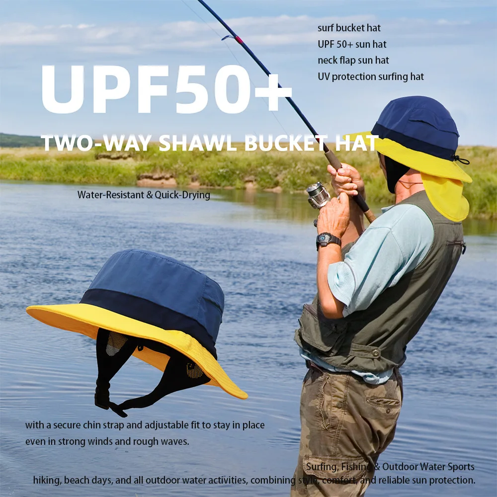 UPF 50+ Fishing Surfing Outdoor Water Sports Hat Nylon Quick Dry Cu...