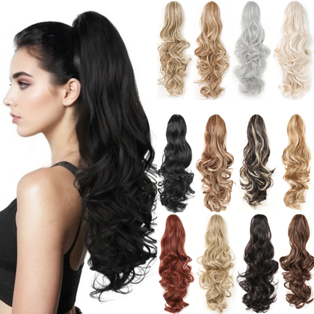 Claw Clip in Ponytail Extension Synthetic Hairpiece Curly Wavy Hair Extension 18&24 inch Long Po...