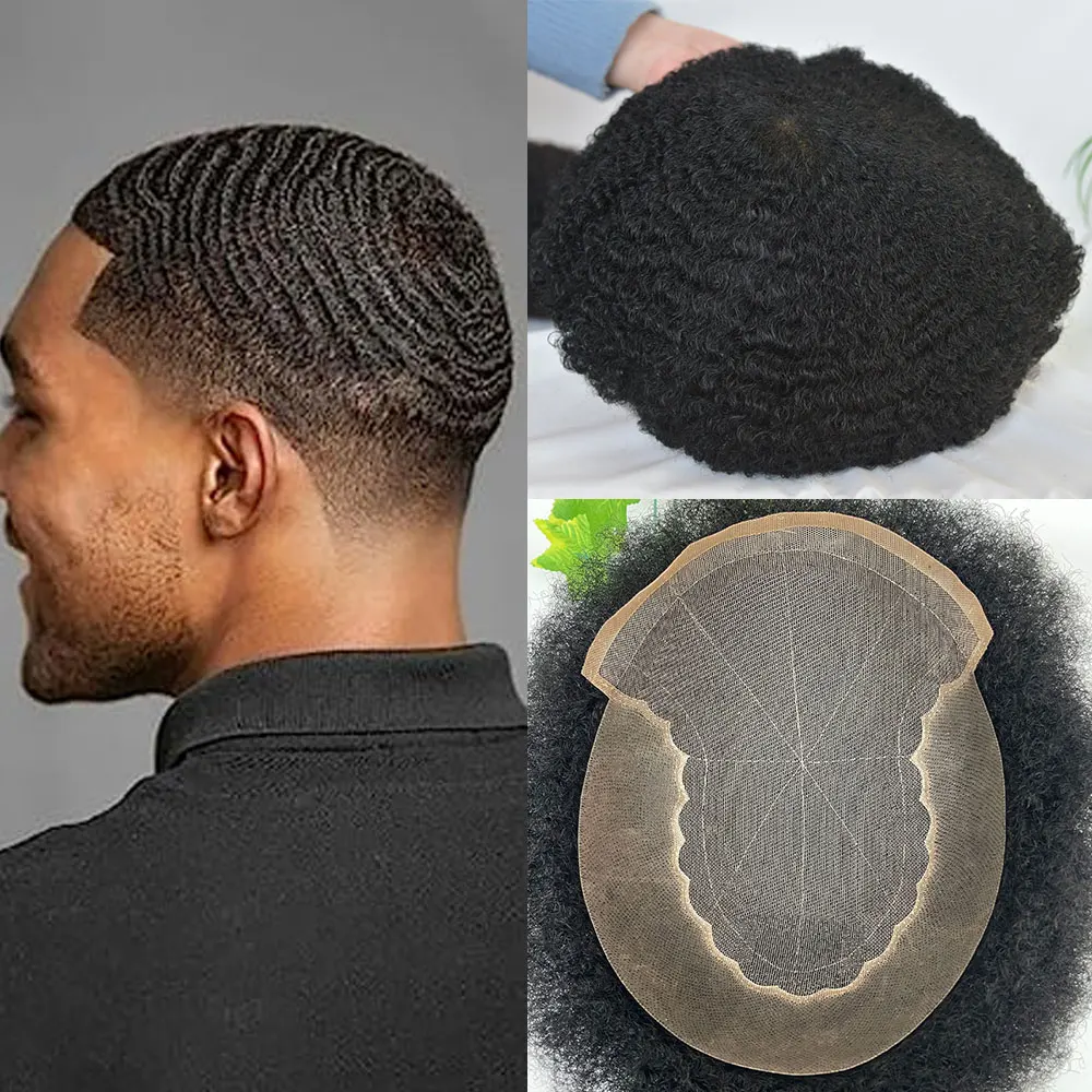 Afro Toupee 6MM Weave Hair Unit Black Mens Curly Toupee 100% Human ...