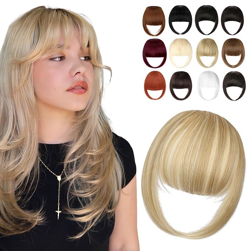 Clip in Bangs, Synthetic French Bangs Hair Clip Fake Bangs Fringe w...