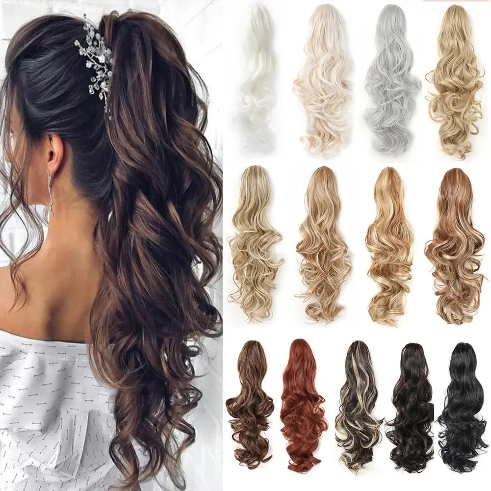 Women's synthetic claw clip ponytail hair extensions, wavy claw clip ponytail hair extensions wigs