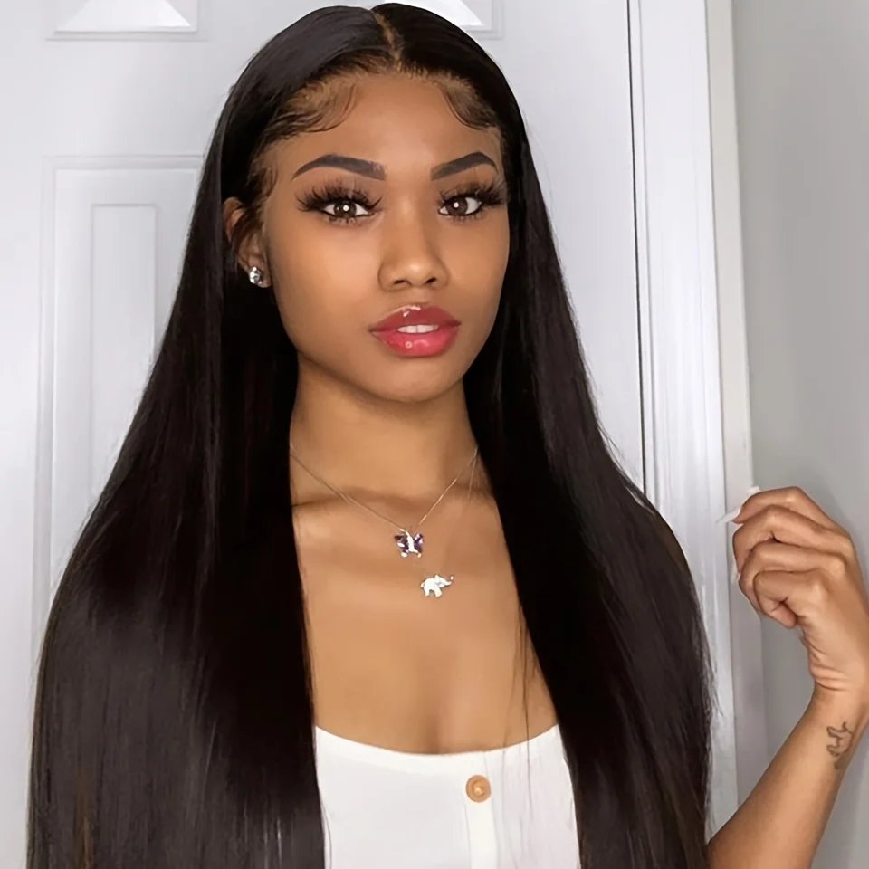 High Density 180 200 Glueless Wigs Bone Straight Human Hair Ready t...