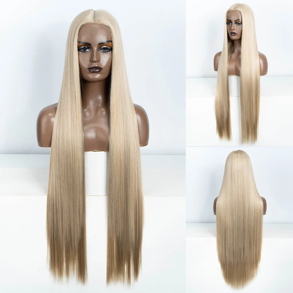 Noble Synthetic Lace Front Wigs For Women 38 Inch Straight Wig Lace Wig Ombre Blonde Lace Wigs Cospl...