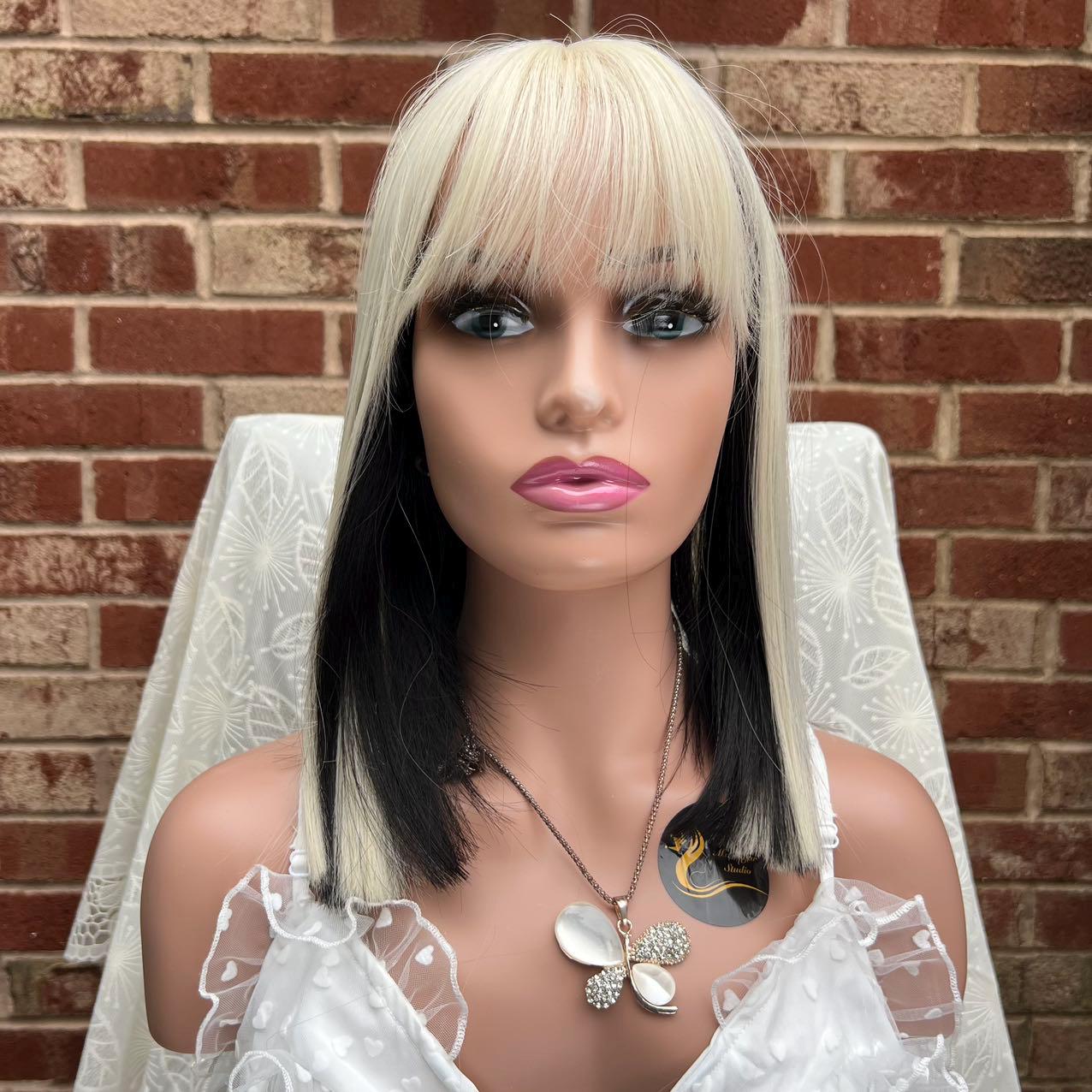 Emo wig, ponytail wig, blonde wig with bangs, wig with bangs, bleac...