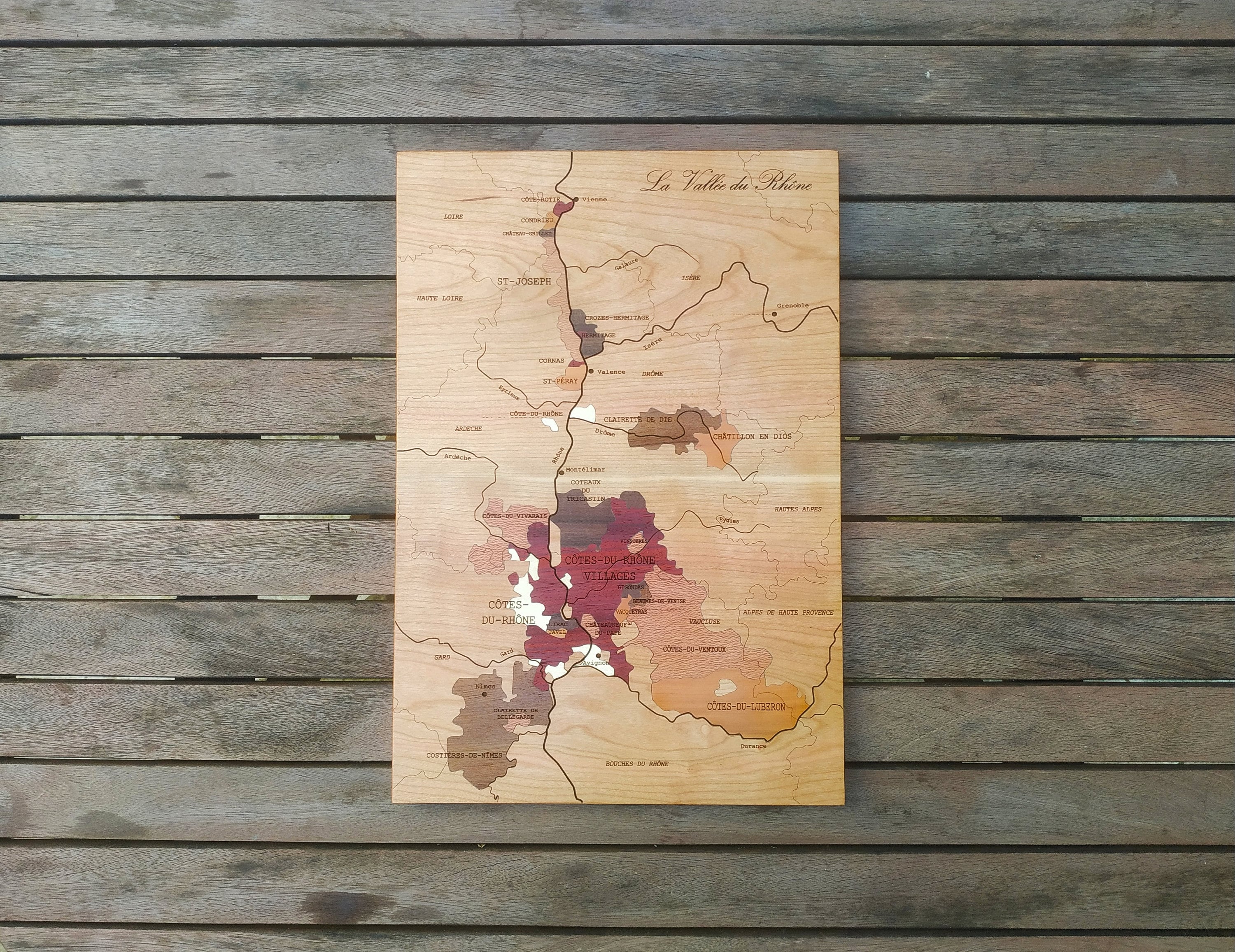 Wines map; RHONE VALLEY; MARQUETRY; handmade; unique piece; gift idea; made in France AuTours du Vin...