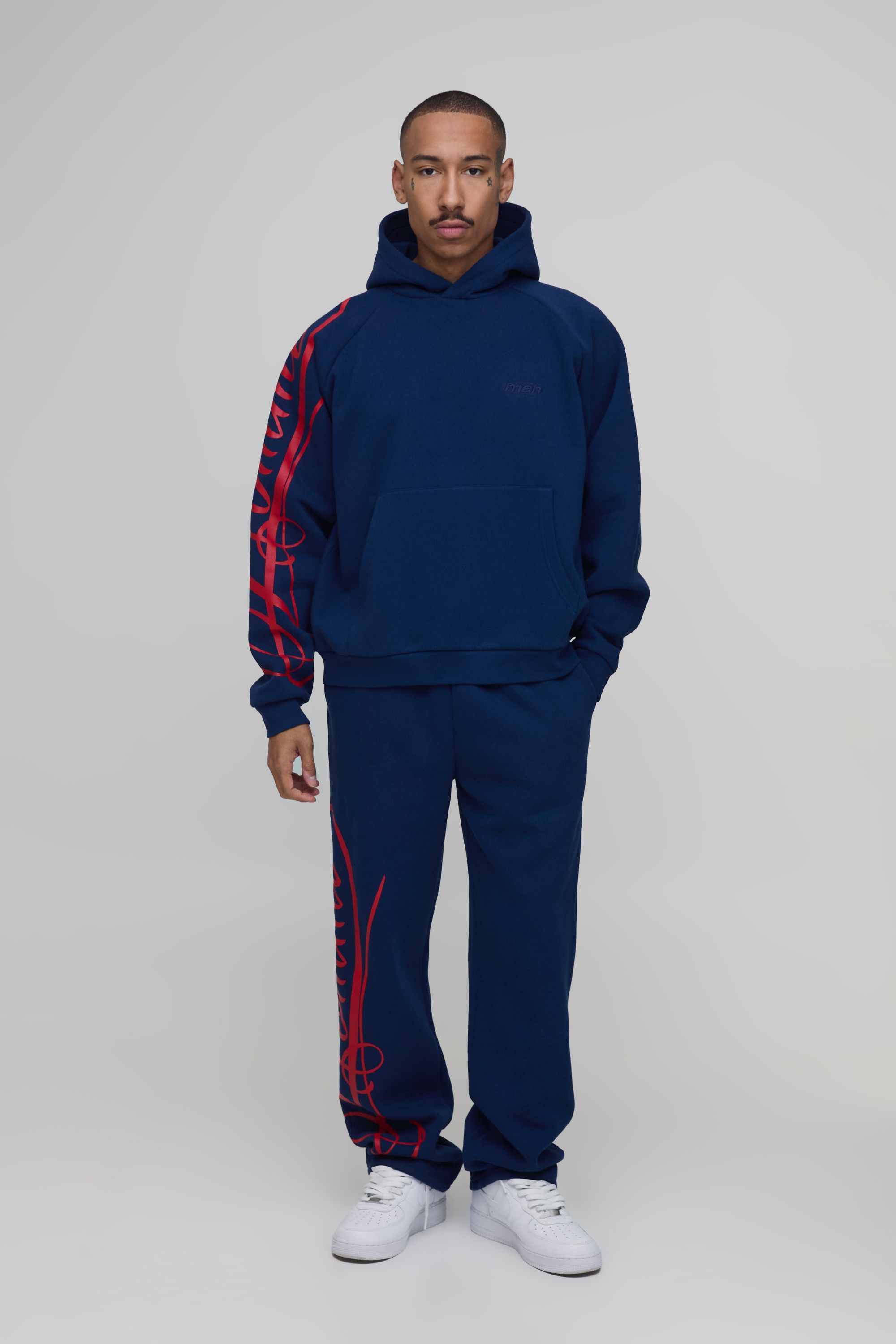 Boohooman Mens Oversized Boxy Homme Script Hoodie and Relaxed Split...