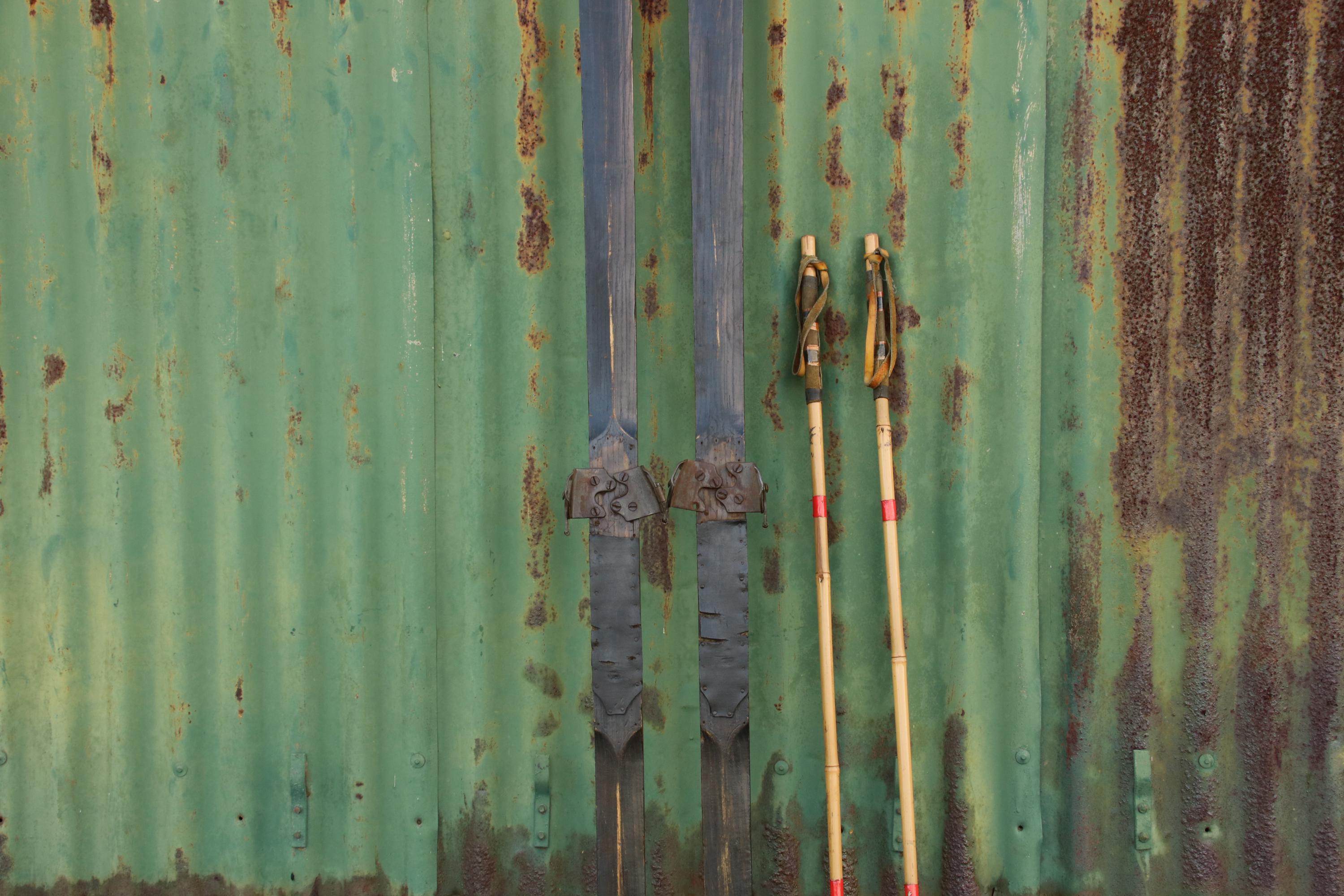 Vintage Set of Old Antique Wooden Skis. Shop Christmas Display. #23
