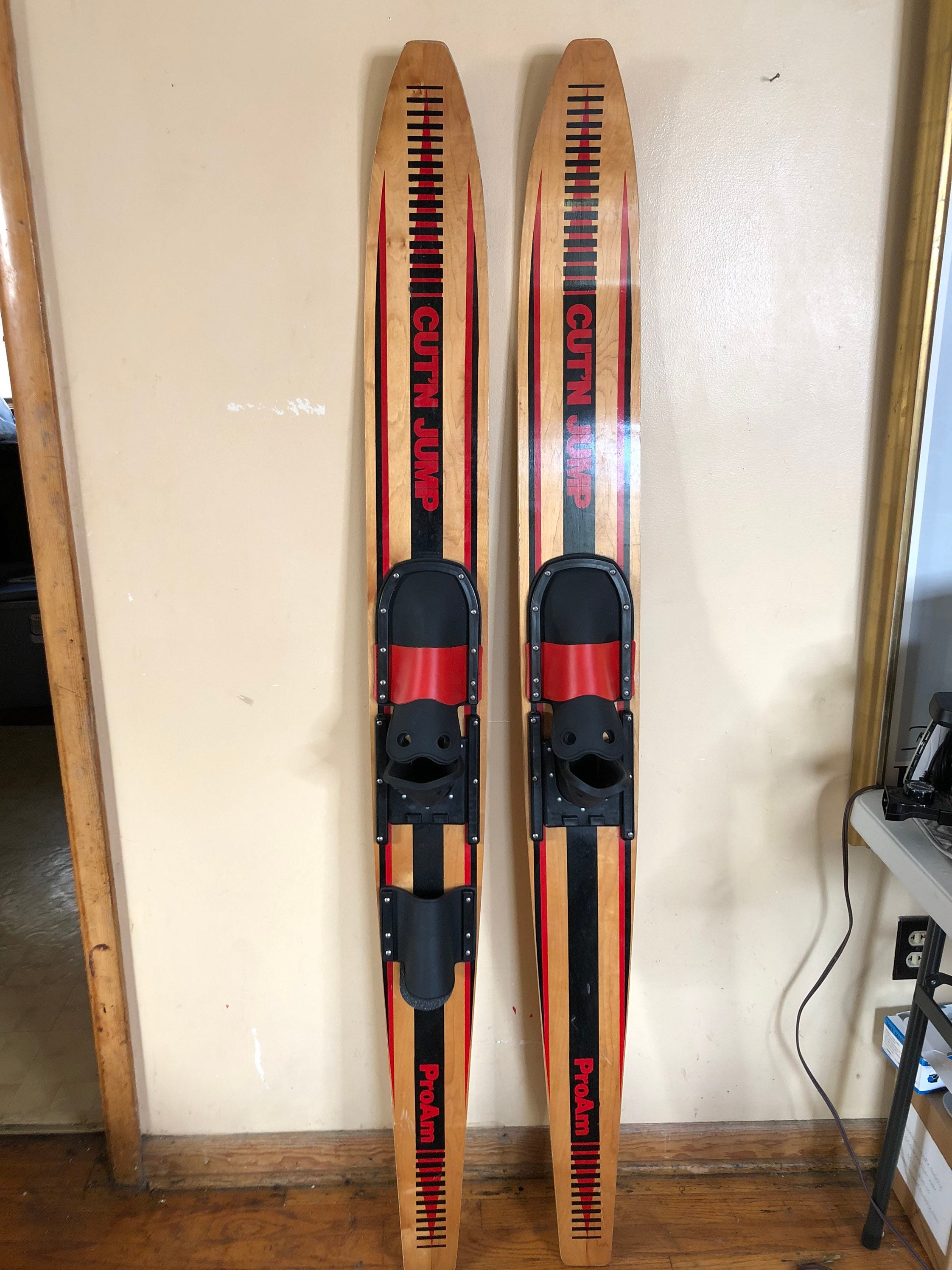 Vintage CUT N JUMP wooden wood Skis Pro AM skier skiing mens women'...