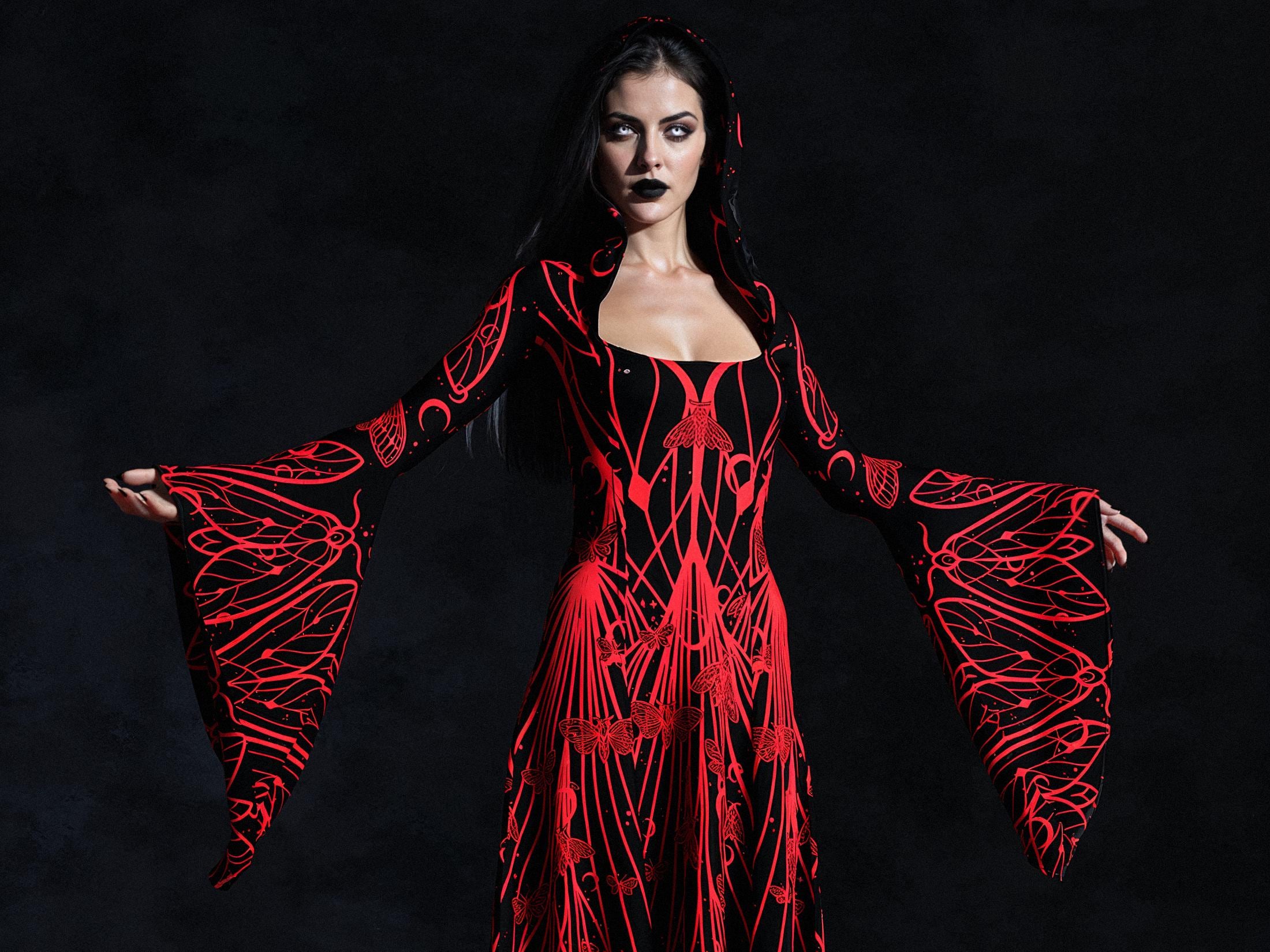 Presenting the iconic Black Backless Hooded Dancing Dakini Dress, a symbol of feminine allure that c...
