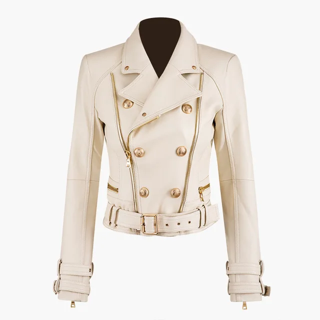 Fashion zipper stitching pu leather jacket female Locomotive style double breasted pu leather outerw...