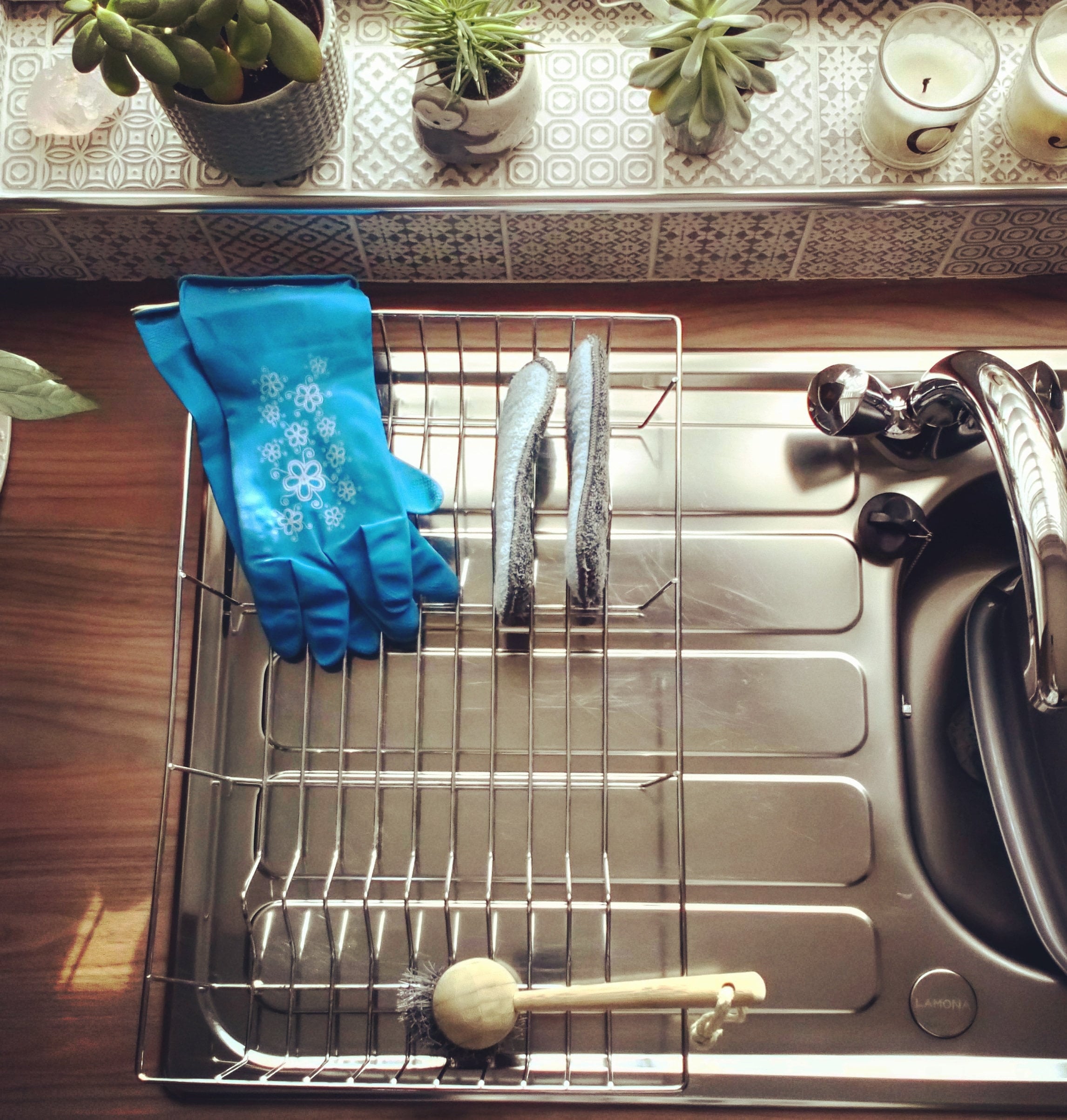Washing Up Gloves with Floral Print, Rubber Gloves, Latex Gloves, H...