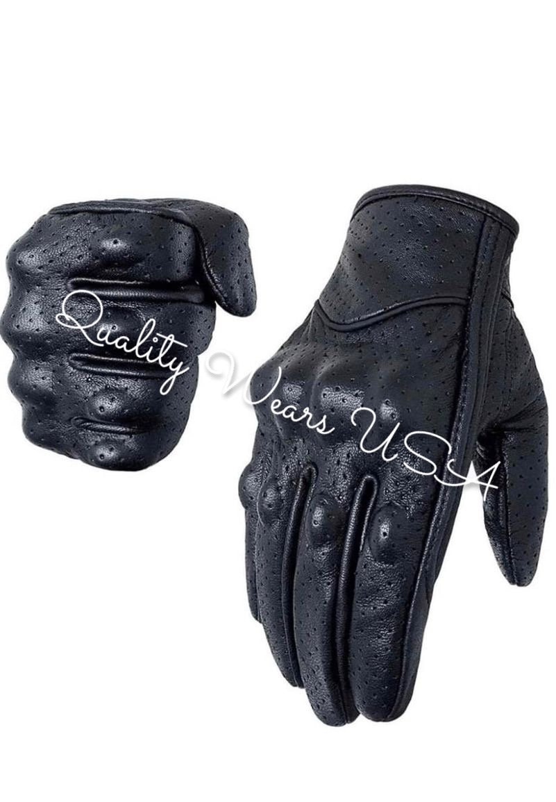 Men Leather Touchscreen Gloves Biker knuckle Protection Black Glove...